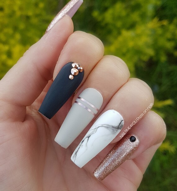 Stylish Grey Falsche Nagel Drucken Sie Auf Nagel Gefalschte Etsy