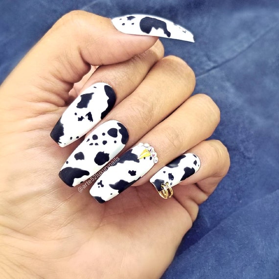 Kuh Matt Von Hand Bemalt Presse Auf Nagel Sarg Nagel Acryl Etsy