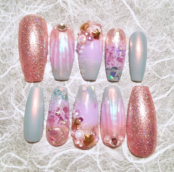 Meerjungfrau Falsche Nagel Strand Nagel Lange Sarg Nagel Etsy