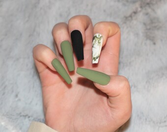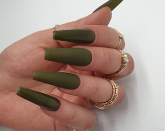 Olive Green Matte Green Acrylic Nails Green Nails Olive Nails