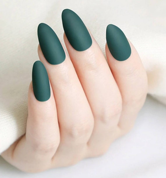 24 Matte Press On Nagel Mittlere Lange Dunkle Mandelspitze Etsy