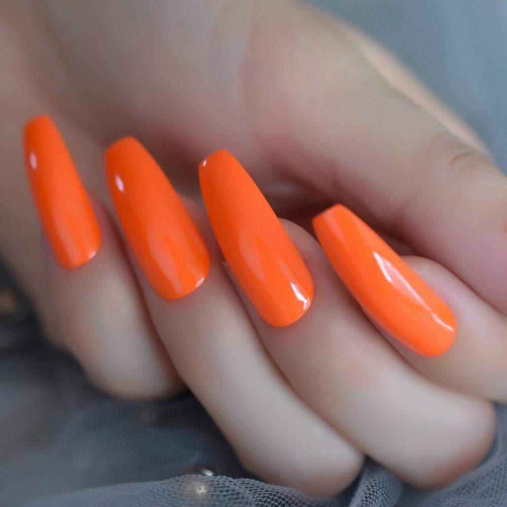Hot Neon Orange Lange Sarg Nagel Erstaunliche Glanzend Uv Gel Polnischen Extra Lange Ballerina Gefalschte Nagel 24 Ct Falsche Nagel Aliexpress