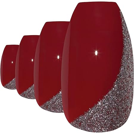 Bling Art Falsche Nagel Rot Glitzer Ballerina Sarg Nagel Sarg Acryl 24 Gefalschte Lange Tipps Amazon De Beauty