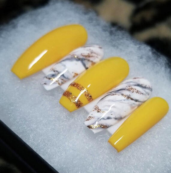 Gelber Marmor Drucken Sie Auf Nagel Ballerina Nagel Sarg Etsy