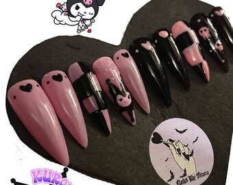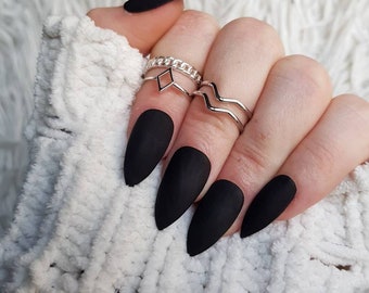 Matt Gefalschte Nagel Grau Drucken Sie Auf Nagel Schwarz Etsy
