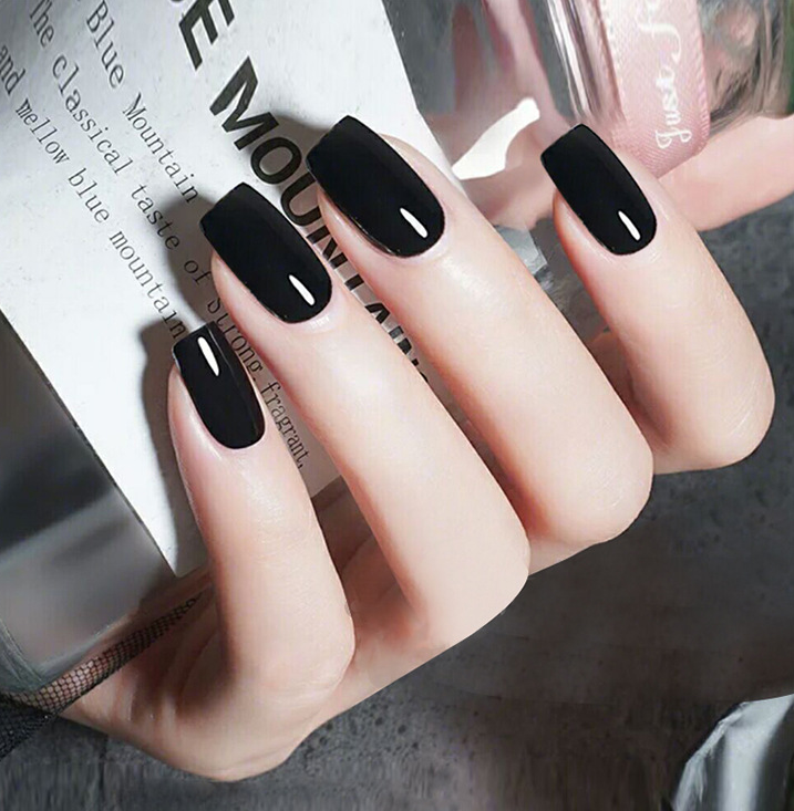 Brishow Sarg Kunstliche Fingernagel Lange Falsche Nagel Reine Farbe Stick On Nails Ballerina Glanzende Vollabdeckung Acryl Falsche Nagelspitzen 20pcs Fur Frauen Und Madchen Schwarz Amazon De Beauty