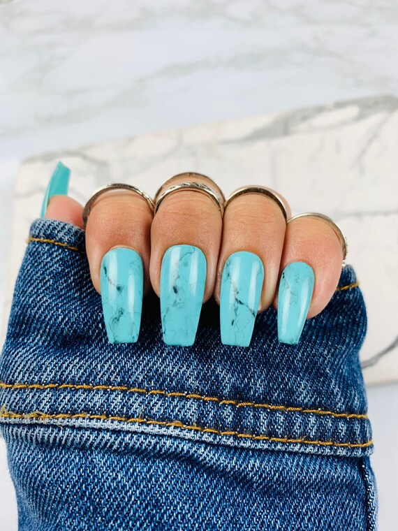 Turkis Marmor Drucken Sie Auf Nagel Blaue Nagel Blauer Etsy