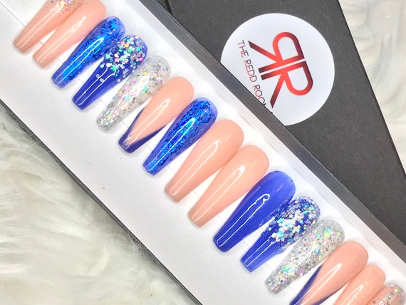 Blauer Sarg Nagel Lange Stick Auf Nagel Lange Drucken Auf Etsy
